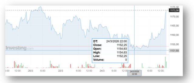 Más abajo vemos la evolución del precio del aceite durante el día 25 y cómo se empina a partir del mediodía, cuando los inversores advierten la oportunidad de compra.