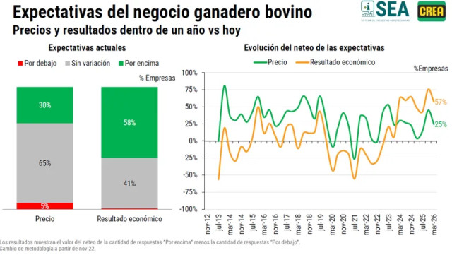 El 58% de los empresarios ganaderos consultados tiene expectativas favorables sobre el resultado del negocio para el próximo año. Se trata de uno de los niveles más elevados de la serie histórica de la Encuesta SEA.