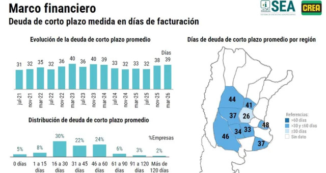 Se observa un crecimiento de la deuda de corto plazo de las empresas lecheras medida en días de facturación, con un 35% de la muestra que cuenta con compromisos equivalentes a más de 46 días de ingresos.