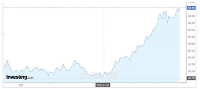 El gráfico muestra cómo desde inicios del año, los precios futuros del aceite de soja en evolucionado en franco ascenso. Y muy especialmente en desde febrero, al momento de comenzar la guerra en Medio Oriente.