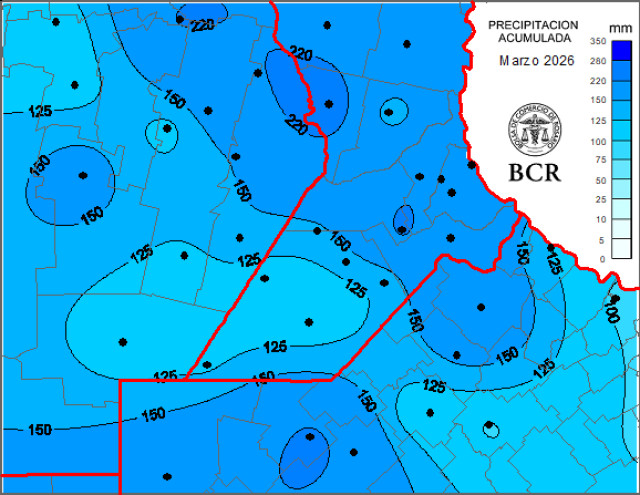 El fin de semana pasado volvió a sumar milímetros a los acumulados de marzo. Los registros más importantes pisaron el norte de la región, una de las zonas más vulnerables a excesos. Sin embargo, también se dieron sobre el centro de la región, donde había llovido menos en marzo, por lo que “ecualizó” el nivel de lluvias mensuales.