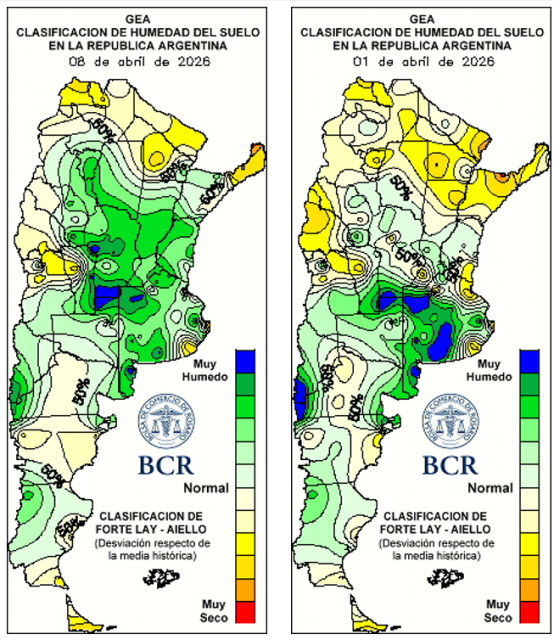 En Rosario, el promedio histórico de lluvias de la primera semana de abril es de 32 mm. En este 2026, la localidad acumuló 118 mm en ese periodo. En los últimos 70 años solo 2 veces se superó ese registro: en 1994, con 192 mm y en 2016, con 180 mm. Ese año, la cosecha de la oleaginosa estuvo marcada por recurrentes temporales que dejaron importantes problemas en la calidad de grano y una pérdida de 3 M en la producción de soja. Con este antecedente, la atención se centra ahora en pronóstico el corto plazo, ya que si bien para el sábado 11 se prevé una baja probabilidad de lluvias, las mayores chances se concentran hacia el martes 14, con eventos aislados e intermitentes.