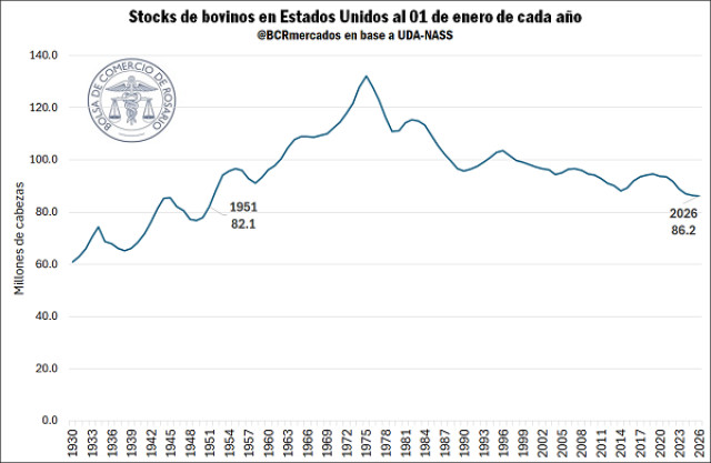 Esta dinámica se hizo posible, en primer lugar, a partir de la reapertura del mercado estadounidense para las carnes argentinas en 2019. Por otro lado, durante el último año la demanda del gigante norteamericano se profundizó por el déficit de stocks que atraviesa dicho país. De acuerdo con datos del USDA-NASS, el 01 de enero de 2026, los inventarios de ganado en Estados Unidos se ubicaron en 86,2 millones de cabezas, lo que es un mínimo en 75 años. Esto se debe a que importantes regiones ganaderas del país norteamericano enfrentaron condiciones secas recurrentes en los últimos años, lo que produjo una aceleración de la faena, situación agravada por una participación elevada de hembras dentro de la misma. Este déficit que atraviesa el principal consumidor de carne bovina del planeta no solo ocasionó un aumento en los precios internacionales de la carne en el transcurso del último año, sino que también traccionó las importaciones estadounidenses, lo que coadyuvó al aumento de la proporción de las exportaciones argentinas a este destino.