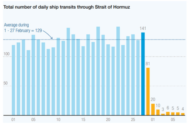 Número de buques que transitar por el Estrecho desde el 1 de marzo (UN Trade and Development (UNCTAD), based on data provided by Clarksons Research Shipping Intelligence Network.