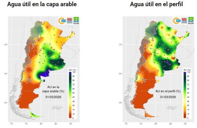 Figura 5. Contenido de agua útil en el suelo a finales de marzo (SMN-UBA).