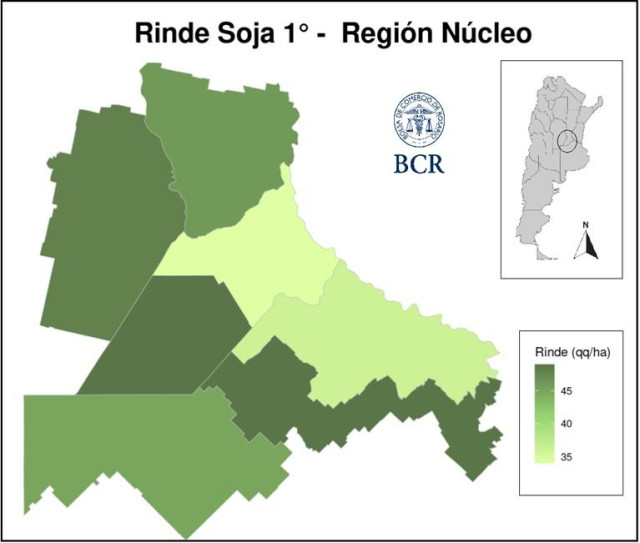 Hay una gran brecha de rindes en soja de primera, las marcas van de 10 a 70 qq/ha. Lo bueno es que si bien falta mucho para que se consoliden resultados, la soja de 1ra está mostrando un promedio de 44 qq/ha cuando hace un mes se esperaba 40.
