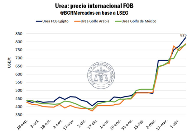 Si a principios del 2026 se necesitaban 2,7 toneladas de trigo para comprar una de urea pensando para la siembra 2026/27, con la configuración actual de precios relativos se necesitarían 4,3 toneladas de trigo por cada una de urea. En cuatro meses, el costo relativo de aplicación de fertilizante se incrementó en un 57%. Otro tanto ocurrió con el gasoil, insumo más que presente en la producción agrícola.