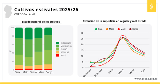 En definitiva, la campaña actual transitaba su etapa final en un escenario con algunos contrastes. Mientras que el volumen de producción de soja y maíz prometen superar los registros históricos, los cultivos regionales como el maní y el sorgo tendrían su producción más baja de los últimos tres ciclos. El éxito del cierre de esta campaña dependerá de la estabilidad climática en las próximas semanas, necesaria para capitalizar los rendimientos definidos y avanzar con la cosecha.