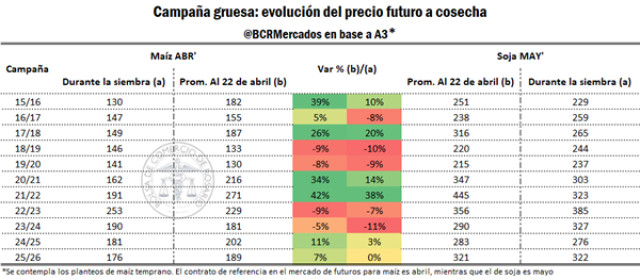 Por último, se puede remarcar que, con el cambio de los precios relativos el maíz sigue siendo una opción atractiva para la venta: las cotizaciones disponibles por maíz se recuperaron significativamente luego de tocar mínimos a fines de marzo y es la soja la cuál ahora está sintiendo el rigor de la presión de cosecha.