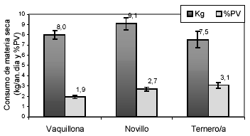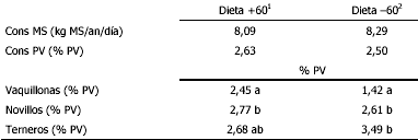 vaquillonas, y como los niveles de consumo no difirieron entre ambas