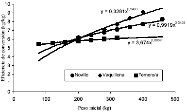ganancia de peso y la eficiencia de conversión: a la categoría (ternero/a,