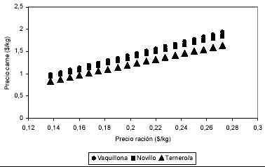 En la Figura 4 se observa el precio de indiferencia del kilo de carne en