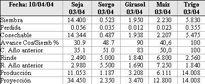 Fuente: Bolsa Cereales de Buenos Aires 7/04/2004.