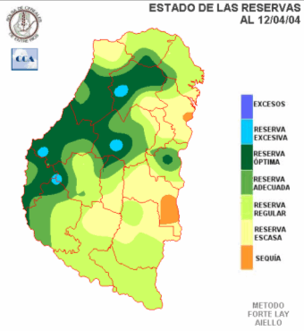 Como resultado de las lluvias de la semana pasada, las reservas muestran al 13/04/04 una distribución que puede verse en el mapa de la izquierda.