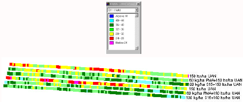 Se realiza monitoreo, para confeccionar mapa de rendimiento, con cosechadora Case equipada con monitor AFS y GPS. Las parcelas se referencian para poder evaluar, a través de mapa de rendimiento del cultivo posterior, el efecto residual del fertilizante