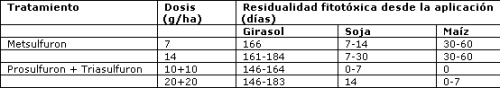Tabla 1. Residualidad fitotóxica de Metsulfuron y