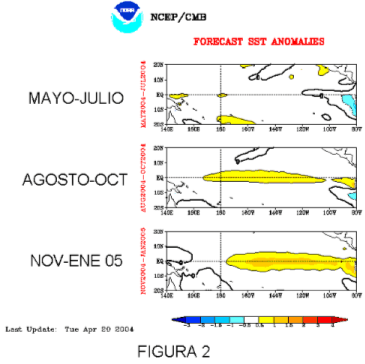 Se mostraron los pronósticos de temperatura superficial del Pacífico (FIGURA 2) para: