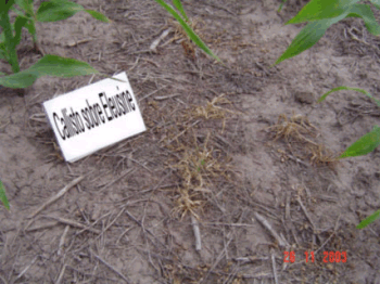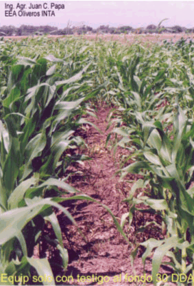 El manejo adecuado del cultivo de maíz exige la integración coordinada de distintos factores de producción y la relación que guardan estos entre sí es sumamente estrecha, de tal manera que la acción desfavorable de uno de ellos puede llegar a limitar la expresión óptima de los otros (Cepeda y Rossi 2003). Dentro de estos factores, el control de malezas constituye uno de los de mayor incidencia. Su acción negativa se traduce principalmente en las pérdidas derivadas de la interferencia que las malezas causan sobre el cultivo pudiendo alcanzar valores de hasta el 95% dependiendo esto de la composición de la comunidad y la densidad de las distintas especies presentes. En siembra directa se genera un ambiente edáfico que favorece la proliferación de gramíneas anuales cuya interferencia puede ocasionar pérdidas altamente significativas. Dentro de ellas podemos citar al pasto cuaresma (Digitaria sanguinalis), pasto bandera (Brachiaria spp.), pasto pata de ganso (Eleusine indica), etc. Es muy importante realizar un control temprano de éstas a fin de minimizar las pérdidas y evitar rebrotes.