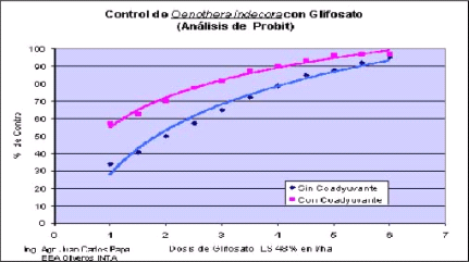 glifosato se vió favorecido por la adición de coadyuvantes lo que indicaría que