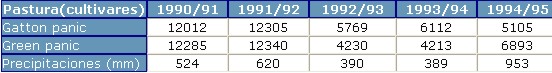 Cuadro 2: Producción de forraje anual de gramíneas