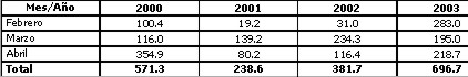 Cuadro comparativo de precipitaciones (mm)