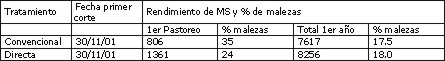 con siembra directa, y presentó una menor proporción de malezas. Esto podría ser