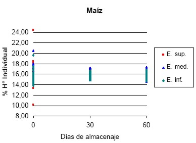 (superior, medio e inferior). Se determino la humedad en granos individuales
