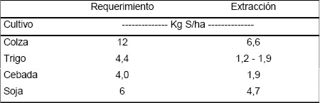 Tabla 2: Necesidades de S para los cultivos de