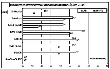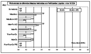 herbicidas. La fitotoxicidad inicial fue alta, principalmente en las mezclas de
