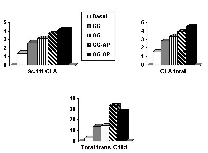 mientras que la de los AG benéficos (trans11-C18:1 y CLA) fue amplificada. Ello