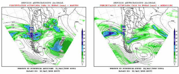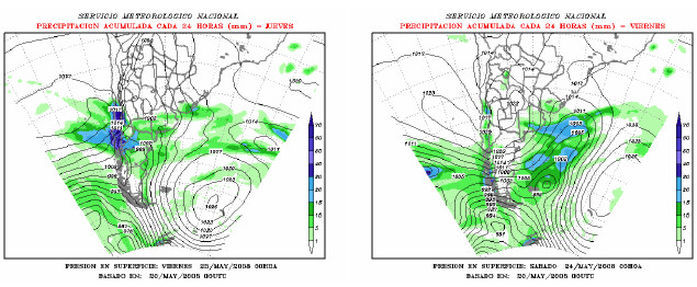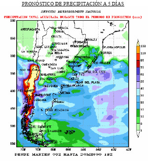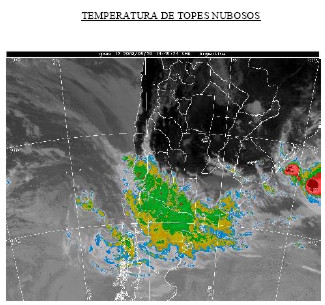ESTE DE SALTA, ESTE DE JUJUY Y TUCUMAN NUBOSIDAD VARIABLE. TIEMPO INESTABLE HACIA LA NOCHE. VIENTOS LEVES DEL NORESTE, CAMBIANDO AL SECTOR SUR. TEMPERATURA MÍNIMA ENTRE 15°C Y 17ºC. TEMPERATURA MÁXIMA ENTRE 28ºC Y 30ºC. MISIONES, NORTE DE CORRIENTES, CHACO Y FORMOSA NUBOSIDAD VARIABLE. VIENTOS LEVES A MODERADOS DEL NORESTE. TEMPERATURA MÍNIMA ENTRE 16°C Y 19ºC. TEMPERATURA MÁXIMA ENTRE 28ºC Y 30ºC. SUR DE CORRIENTES, NORESTE DE SANTA FE Y NORTE DE ENTRE RIOS CIELO NUBLADO. TIEMPO INESTABLE CON PROBABILIDAD DCE PRECIPITACIONES. VIENTOS LEVES A MODERADOS DEL SECTOR NORTE, CAMBIANDO AL SECTOR SUR. TEMPERATURA MÍNIMA ENTRE 17°C Y 19ºC. TEMPERATURA MÁXIMA ENTRE 27ºC Y 29ºC. NORTE DE CORDOBA Y SANTIAGO DEL ESTERO CIELO PARCIALMENTE NUBLADO O NUBLADO. TIEMPO INESTABLE. VIENTOS LEVES DEL SECTOR NORTE, CAMBIANDO AL SECTOR SUR. TEMPERATURA MÍNIMA ENTRE 17°C Y 19ºC. TEMPERATURA MÁXIMA ENTRE 26ºC Y 30ºC. SUR DE CORDOBA Y SAN LUIS Y NORTE DE LA PAMPA CIELO PARCIALMENTE NUBLADO O NUBLADO. TIEMPO INESTABLE. VIENTOS LEVES DEL SECTOR NORTE, CAMBIANDO AL SECTOR SUR. TEMPERATURA MÍNIMA ENTRE 12°C Y 15ºC. TEMPERATURA MÁXIMA ENTRE 22ºC Y 24ºC. OESTE Y SUR DE SANTA FE Y SUR DE ENTRE RIOS NUBOSIDAD VARIABLE. TIEMPO INESTABLE. VIENTOS LEVES A MODERADOS DEL SECTOR NORTE, CAMBIANDO AL SECTOR SUR. TEMPERATURA MÍNIMA ENTRE 15°C Y 19ºC. TEMPERATURA MÁXIMA ENTRE 27ºC Y 30ºC. NORTE DE BUENOS AIRES NUBOSIDAD VARIABLE. TIEMPO INESTABLE. VIENTOS LEVES DEL SECTOR NORTE, CAMBIANDO AL SUDOESTE. TEMPERATURA MÍNIMA ENTRE 11°C Y 15ºC. TEMPERATURA MÁXIMA ENTRE 19ºC Y 23ºC. SUDESTE DE BUENOS AIRES CIELO NUBLADO. PROBABILIDAD DE LLUVIAS Y TORMENTAS, LUEGO TIEMPO TODAVIA INESTABLE CON PROBABILIDAD DE PRECIPITACIONES. VIENTOS LEVES A MODERADOS DEL NORESTE, CAMBIANDO AL SECTOR SUR, ROTANDO AL SUDOESTE. TEMPERATURA MÍNIMA ENTRE 12°C Y 15ºC. TEMPERATURA MÁXIMA ENTRE 20ºC Y 24ºC. SUDOESTE DE BUENOS AIRES CIELO NUBLADO. PROBABILIDAD DE LLUVIAS Y ALGUNAS TORMENTAS DURANTE LA MAÑANA, LUEGO MEJORANDO CON NUBOSIDAD VARIABLE. VIENTOS LEVES A MODERADOS DEL SECTOR NORTE, CAMBIANDO A MODERADOS A REGULARES DEL SUDOESTE. TEMPERATURA MÍNIMA ENTRE 9°C Y 11ºC. TEMPERATURA MÁXIMA ENTRE 17ºC Y 19ºC. CENTRO Y SUR DE LA PAMPA CIELO NUBLADO. TIEMPO INESTABLE CON PROBABILIDAD DE PRECIPITACIONES, DURANTE LA MAÑANA, LUEGO MEJORANDO CON NUBOSIDAD EN DISMINUCION. VIENTOS LEVES DEL SECTOR ESTE, CAMBIANDO A MODERADO O REGULARES DEL SUDOESTE. TEMPERATURA MÍNIMA ENTRE 10°C Y 12ºC. TEMPERATURA MÁXIMA ENTRE 18ºC Y 21ºC.