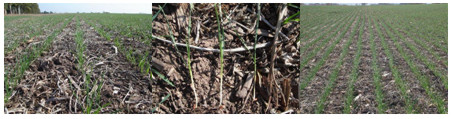 1 y 2 – Lote siembra intermedia, una hoja expandida en Pergamino. 3 – Parcela