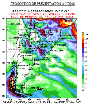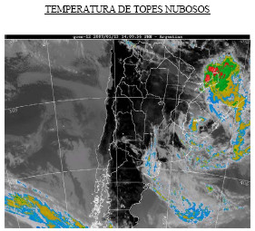 ESTE DE JUJUY, ESTE DE SALTA Y TUCUMAN CIELO NUBLADO. PROBABILIDAD DE TORMENTAS AISLADAS, LUEGO LLUVIAS Y TORMENTAS. VIENTOS LEVES DEL SECTOR ESTE, ROTANDO AL NORESTE. TEMPERATURA MÍNIMA ENTRE 19°C Y 23ºC. TEMPERATURA MÁXIMA ENTRE 33ºC Y 38ºC. SANTIAGO DEL ESTERO, CHACO, FORMOSA Y NORTE DE SANTA FE CIELO ALGO NUBLADO. VIENTOS LEVES DEL NORESTE. TEMPERATURA MÍNIMA ENTRE 22°C Y 25ºC. TEMPERATURA MÁXIMA ENTRE 35ºC Y 38ºC. MISIONES Y CORRIENTES CIELO PARCIALMENTE NUBLADO O NUBLADO. PROBABILIDAD DE TORMENTAS AISLADAS A LA TARDE O NOCHE. VIENTOS LEVES DEL SECTOR NORTE, CAMBIANDO A MODERADOS DEL SUDOESTE. TEMPERATURA MÍNIMA ENTRE 21°C Y 25ºC. TEMPERATURA MÁXIMA ENTRE 32ºC Y 37ºC. ESTE DE ENTRE RIOS NUBOSIDAD VARIABLE. VIENTOS LEVES DEL NORESTE. TEMPERATURA MÍNIMA ENTRE 18°C Y 20ºC. TEMPERATURA MÁXIMA ENTRE 35ºC Y 38ºC. OESTE DE ENTRE RIOS, CENTRO Y SUR DE SANTA FE Y ESTE DE CORDOBA CIELO ALGO NUBLADO, LUEGO NUBOSIDAD VARIABLE. PROBABILIDAD DE TORMENTAS AISLADAS A LA TARDE O NOCHE. VIENTOS LEVES DEL NORESTE, ROTANDO AL ESTE. TEMPERATURA MÍNIMA ENTRE 21°C Y 23ºC. TEMPERATURA MÁXIMA ENTRE 36ºC Y 39ºC. OESTE DE CORDOBA Y SAN LUIS CIELO NUBLADO. PROBABILIDAD DE LLUVIAS Y TORMENTAS, LUEGO TORMENTAS AISLADAS. VIENTOS LEVES DEL SECTOR NORTE. TEMPERATURA MÍNIMA ENTRE 21°C Y 23ºC. TEMPERATURA MÁXIMA ENTRE 31 ºC Y 35ºC. NORESTE DE BUENOS AIRES CIELO NUBLADO. TIEMPO INESTABLE. VIENTOS LEVES DEL NORESTE, CAMBIANDO AL SECTOR SUR. TEMPERATURA MÍNIMA ENTRE 19°C Y 22ºC TEMPERATURA MÁXIMA ENTRE 34ºC Y 36ºC. NOROESTE DE BUENOS AIRES Y NORESTE DE LA PAMPA CIELO NUBLADO O PARCIALMENTE NUBLADO. PROBABILIDAD DE TORMENTAS AISLADAS. VIENTOS LEVES A MODERADOS DEL SECTOR NORTE, CAMBIANDO AL SECTOR SUR. TEMPERATURA MÍNIMA ENTRE 19°C Y 22ºC TEMPERATURA MÁXIMA ENTRE 34ºC Y 39ºC. SUDESTE DE BUENOS AIRES CIELO NUBLADO. TIEMPO INESTABLE . PROBABILIDAD DE TORMENTAS AISLADAS A LA TARDE O NOCHE. VIENTOS MODERADOS DEL SECTOR NORTE, CAMBIANDO AL SECTOR SUR, ROTANDO AL SUDESTE. TEMPERATURA MÍNIMA ENTRE 18ºC Y 21ºC. TEMPERATURA MÁXIMA ENTRE 26ºC Y 34ºC. SUDOESTE DE BUENOS AIRES, CENTRO SUR Y OESTE DE LA PAMPA CIELO NUBLADO. TIEMPO INESTABLE CON PROBABILIDAD DE PRECIPITACIONES, ESPECIALMENTE A LA TARDE O NOCHE.. VIENTOS MODERADOS DEL SECTOR SUR, ROTANDO AL SUDESTE. TEMPERATURA MÍNIMA ENTRE 20ºC Y 22ºC. TEMPERATURA MÁXIMA ENTRE 28ºC Y 34ºC. EXTREMO SUR DE BUENOS AIRES CIELO PARCIALMENTE NUBLADO. VIENTOS MODERADOS DEL SECTOR SUR, ROTANDO AL SECTOR ESTE. TEMPERATURA MÍNIMA ENTRE 14ºC Y 16ºC. TEMPERATURA MÁXIMA ENTRE 25ºC Y 27ºC.