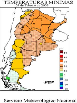 Vientos leves del sector norte. Temperatura mínima entre 22°c y 25ºc. Temperatura máxima entre 34ºc y 39ºc.