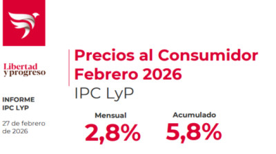 En febrero, el IPC de Libertad y Progreso registró un incremento del 2,8% mensual. Lo que marcaría una desaceleración en el ritmo de la inflación por primera vez luego de ocho meses de mostrar una tendencia al alza...