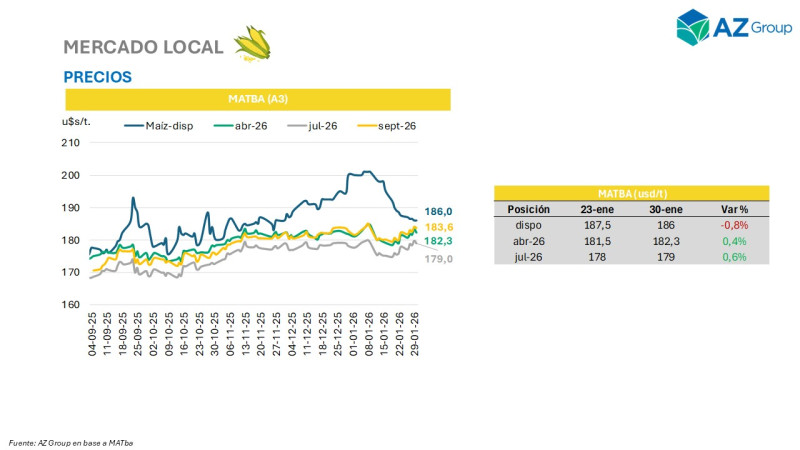 El maíz lateralizó en torno a los 168 usd/t en el mercado de Chicago. A nivel local, los productores continuamos a la espera de nuevas precipitaciones.