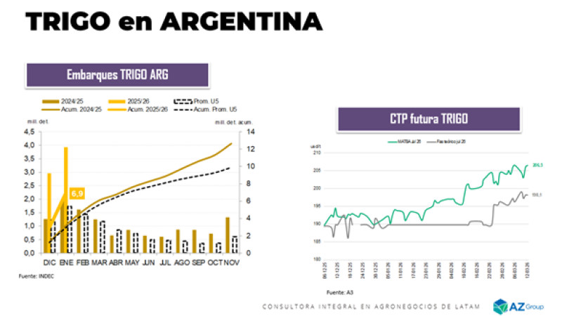 Trigo: Los precios del cereal argentino todavía tienen oportunidad. Por el contexto externo de tensión en Medio Oriente los precios subieron con buenos niveles para cerrar el trigo que todavía tiene el productor en el futuro. Las exportaciones vienen muy bien pero es mucho lo que hay en existencia…